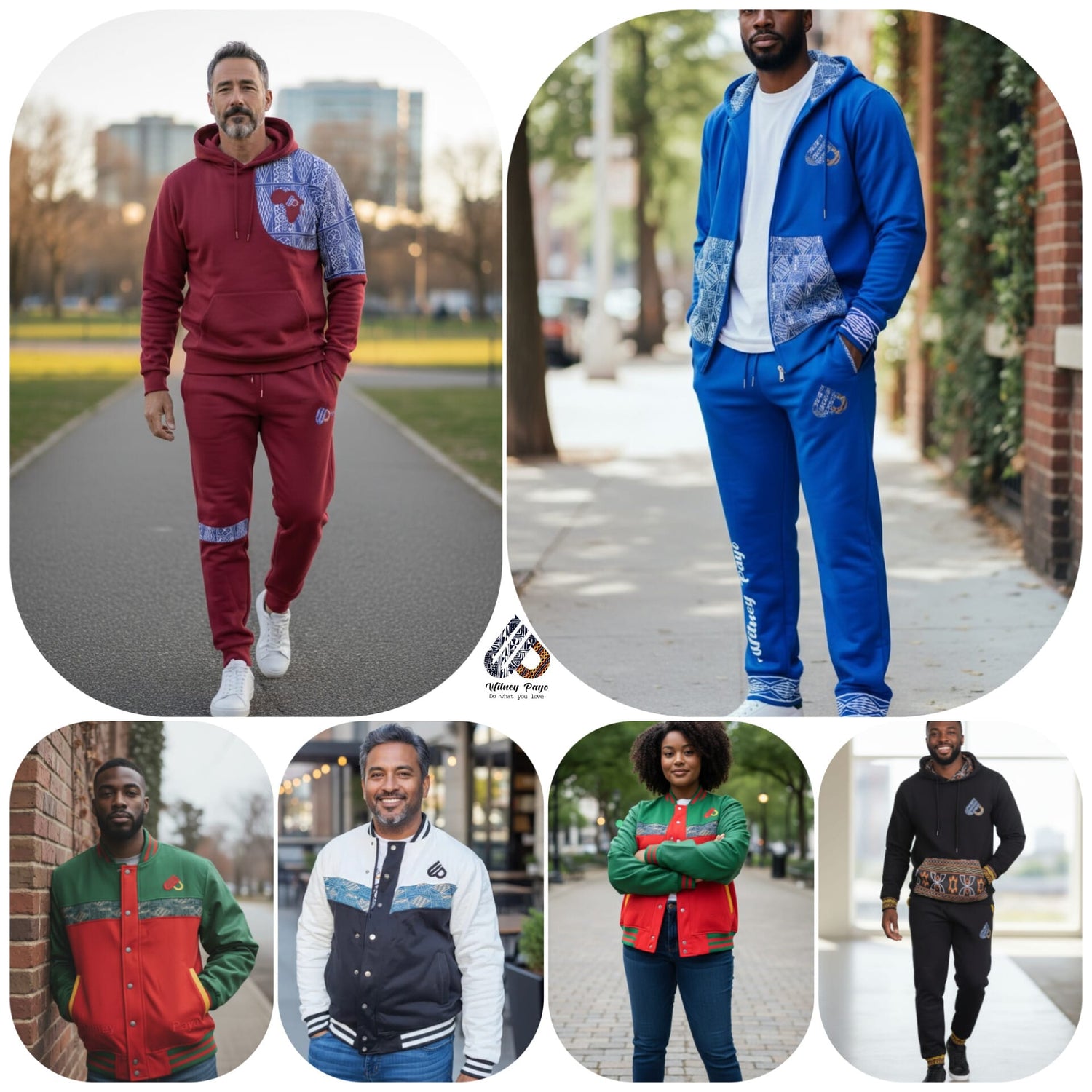 Fashion Full Zip Tracksuit Ndop African Design , Unisex Jogger set.