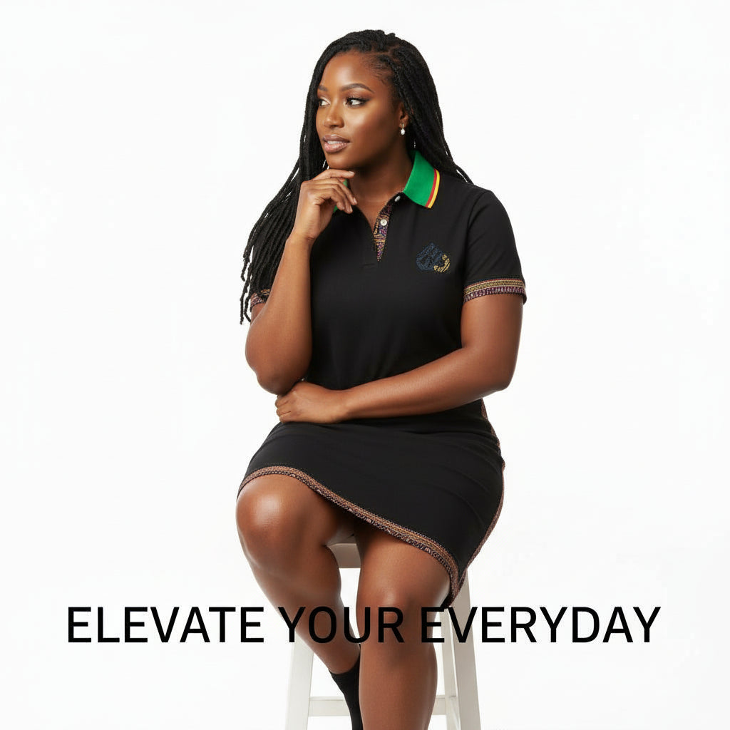 Black fashion Dress, Toghu African pattern Stretch cotton polo dress